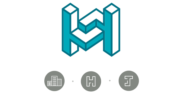 图形的元素为建筑、合玖的首字母“H”“J”